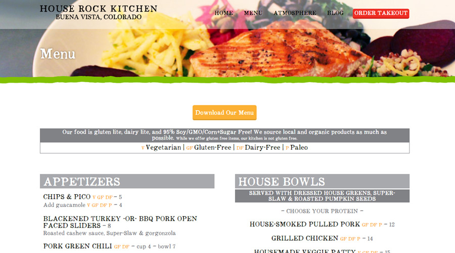 The owners of House Rock Kitchen wanted to showcase the effort they put into serving healthy food, as well as reflect the atmosphere that makes their restaurant a family activity instead of just a meal. Additionally, the site needed to integrate a 3rd party online ordering system for takeout orders.